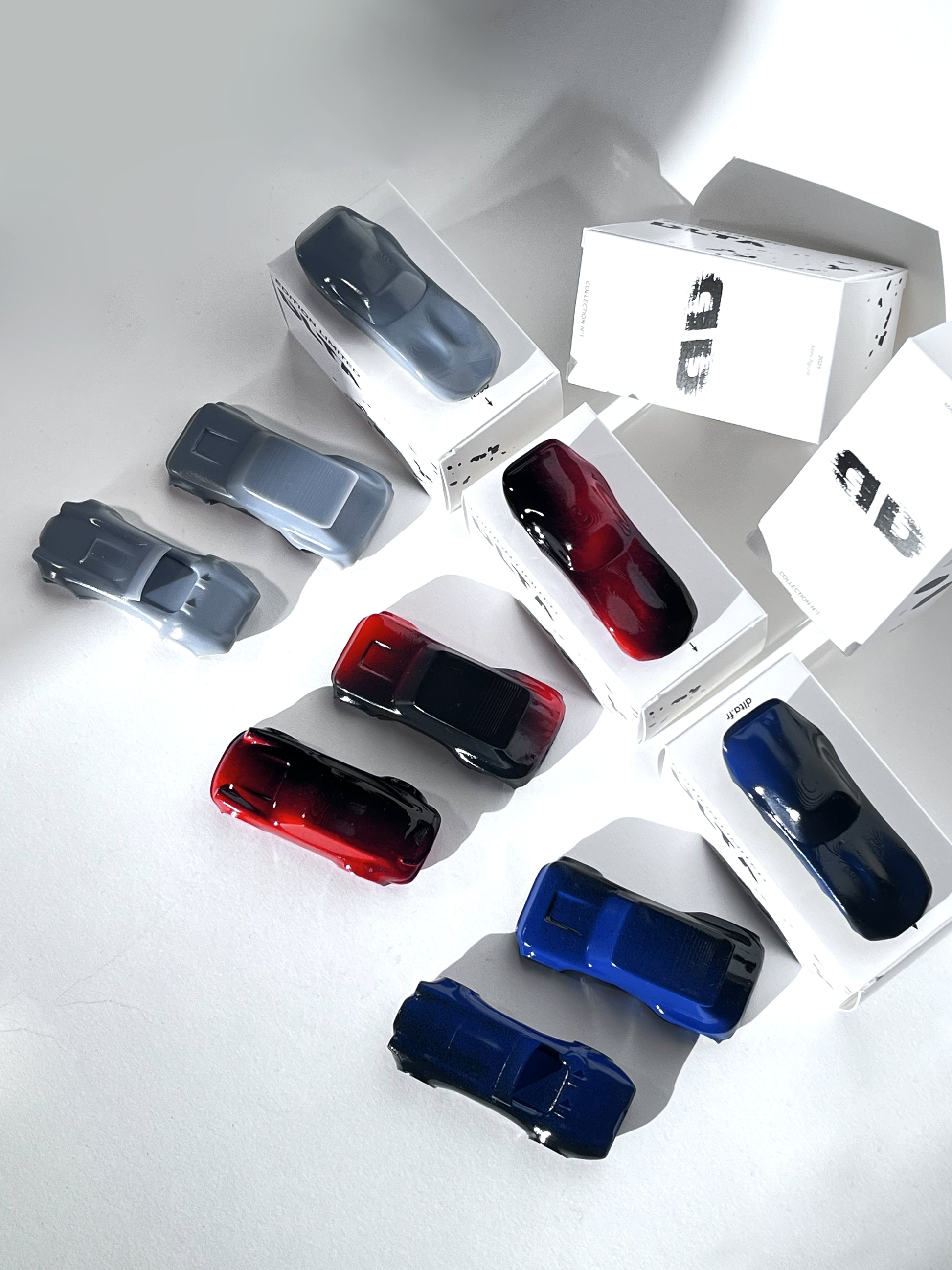 Laisse-toi surprendre par des teintes uniques, glossy ou mates, allant du rouge profond au bleu électrique, en passant par des nuances grises ultra modernes. Chaque combinaison est imaginée pour former un ensemble cohérent, rare et collector.